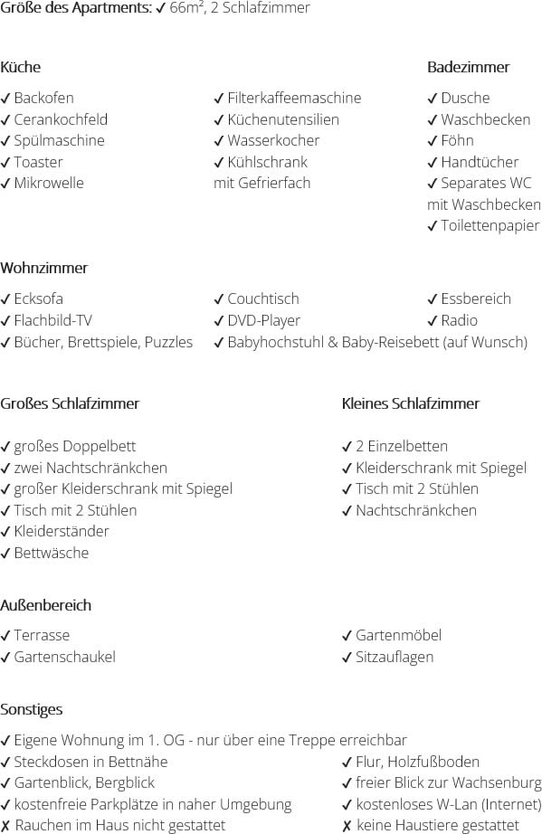 Wir bitten um Verständnis, dass das Mitbringen von Haustieren sowie das Rauchen im Haus nicht erwünscht ist.